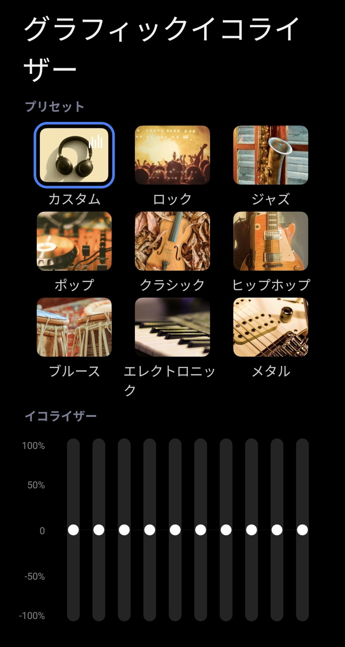 なお、設定アプリにはサウンド効果の調整項目が用意されており、イコライザーのプリセット等を切り替えることが可能となっている。