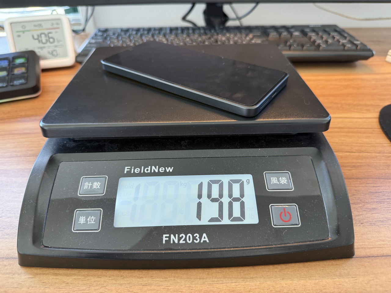 ▼本体重量は実測で約198gとなっており、公称値通り。