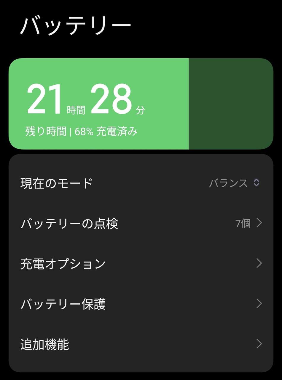 実際に満充電の状態から5時間ほど処理の重いゲームアプリを連続して遊んでみたところ、30%ほどしかバッテリーが減っておらず、1日以上持続可能な充電残量を残していた。