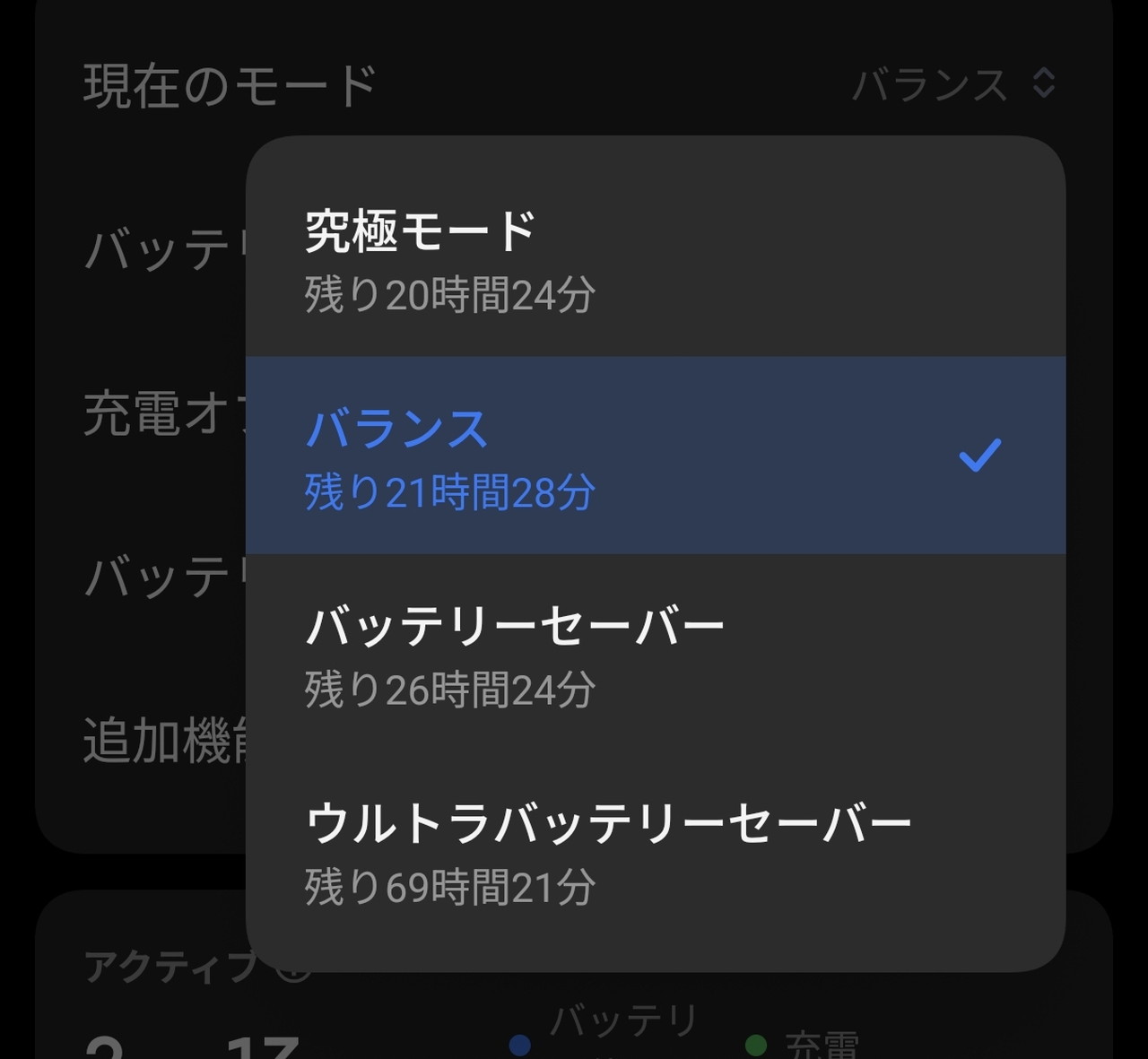 ▼バッテリーセーバーモードに変更することで、より長時間の連続使用が可能となる。