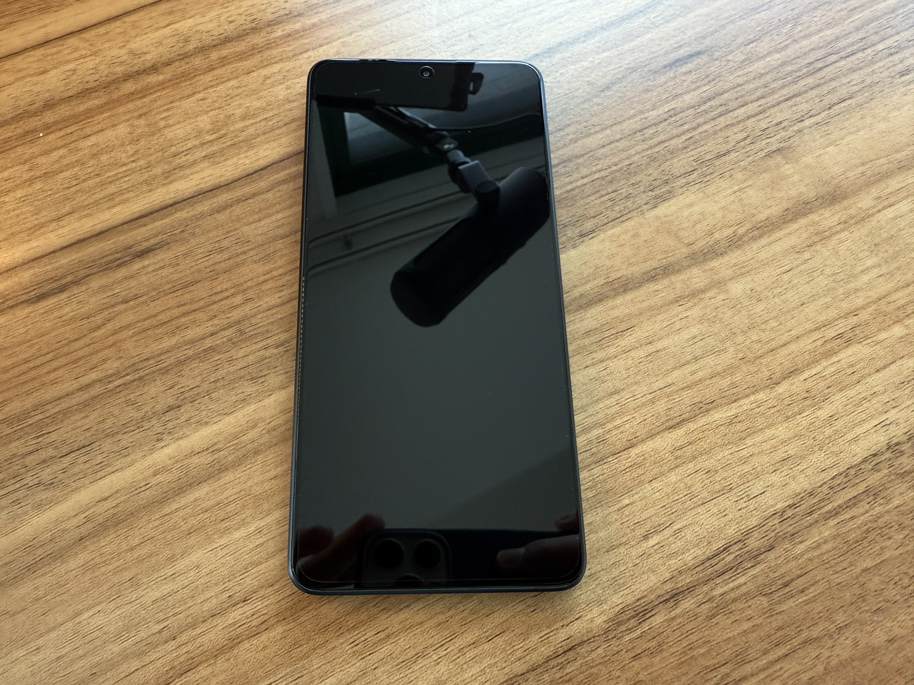 ▼スマホ本体の外観。6.67インチの大きめなディスプレイを搭載したスタイリッシュな外観。