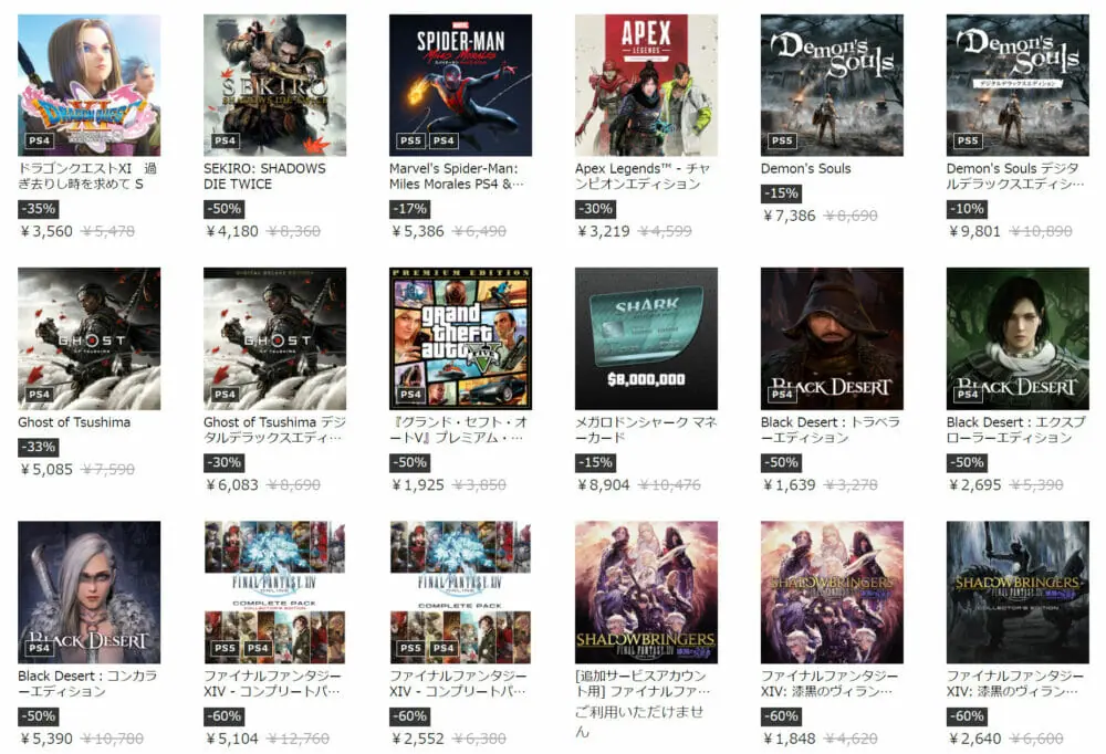 オススメした5タイトル以外にも、非常に多くの名作がお買い得な価格にで販売されています。
