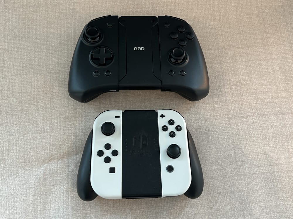 ▼純正のJoy-Con(画像下)と並べた様子。『QRD Stellar T5』の方が縦横いずれも一回り大きなサイズだ。