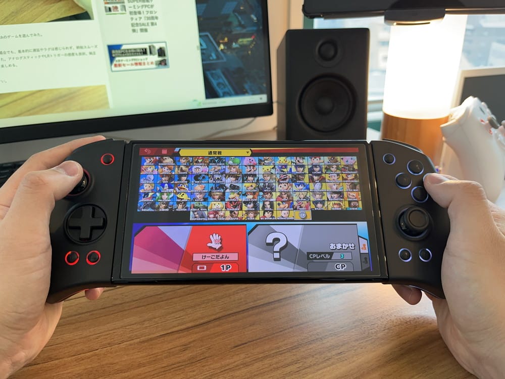 本体に直接接続した場合、Joy-Conのときよりも全体的にサイズが一回り大きくなった感じがする。感覚的にはSteam Deckと同程度のサイズ感といったところだ。