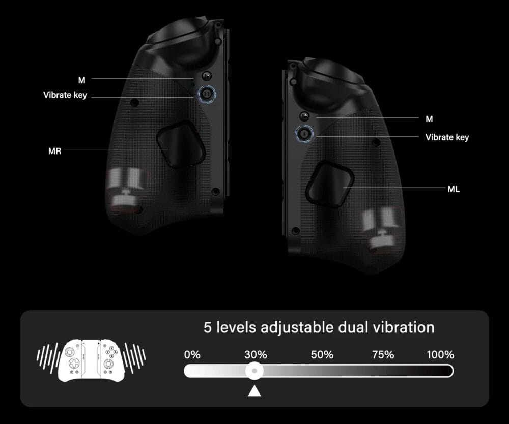 ▼背面にはMボタン、振動ボタン、ML/MRボタンが左右に用意。
