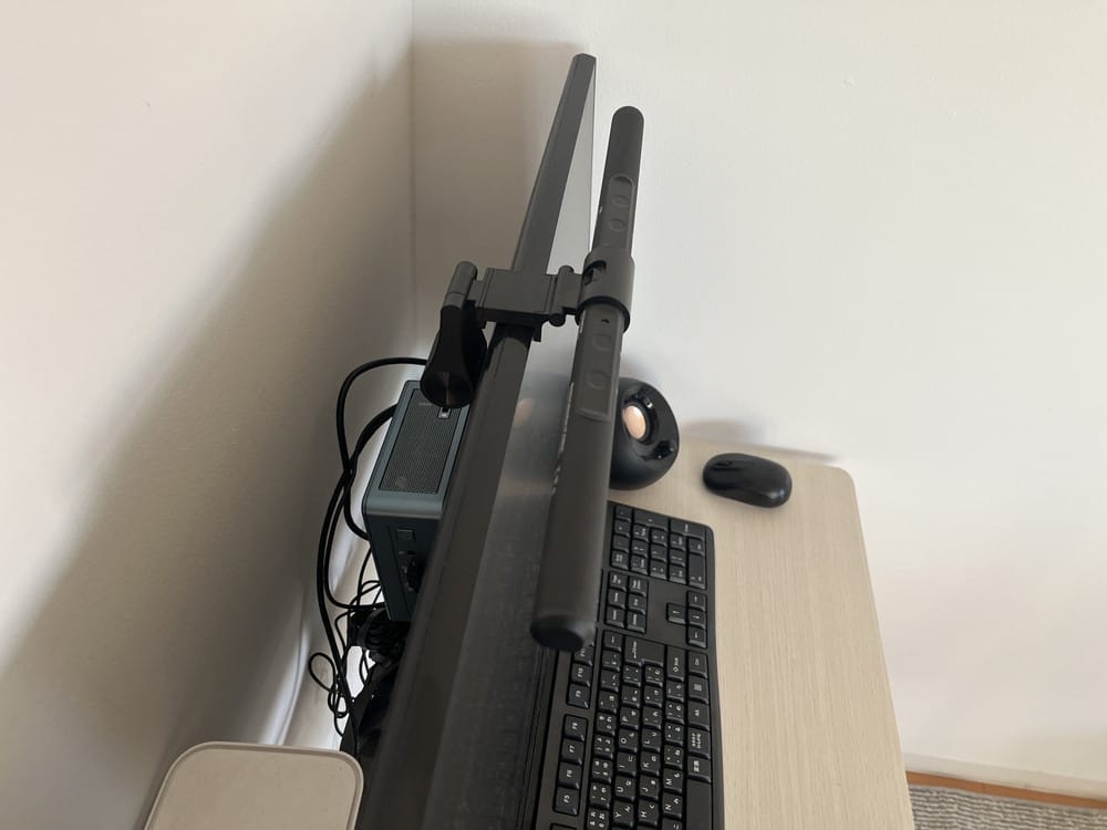 そしてクリップをモニター上部へ引っ掛けるカタチで設置する。