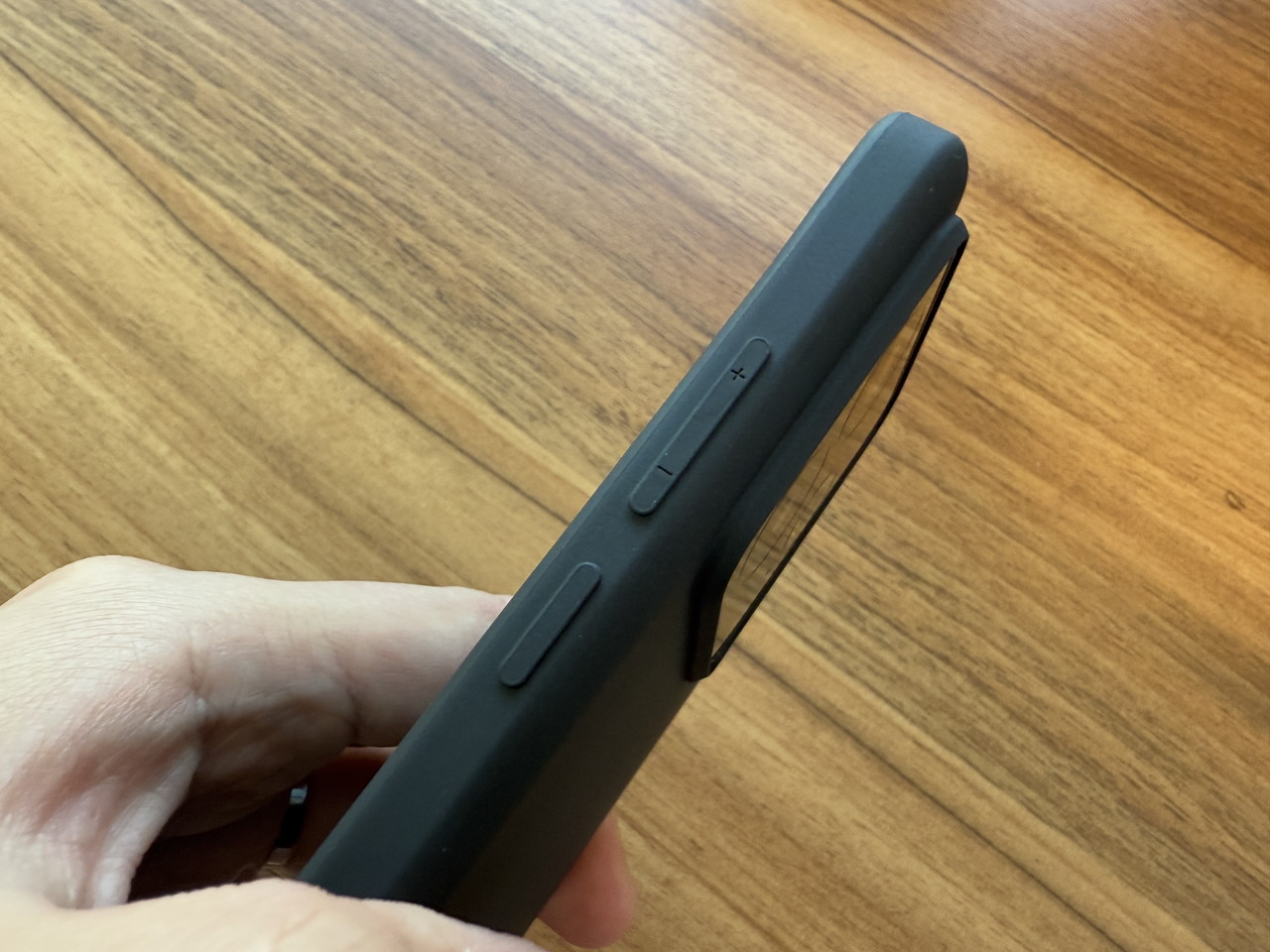 ▼上下のケース縁が若干盛り上がっており、落下した際に衝撃が直接ディスプレイへ加わらないようになっている。