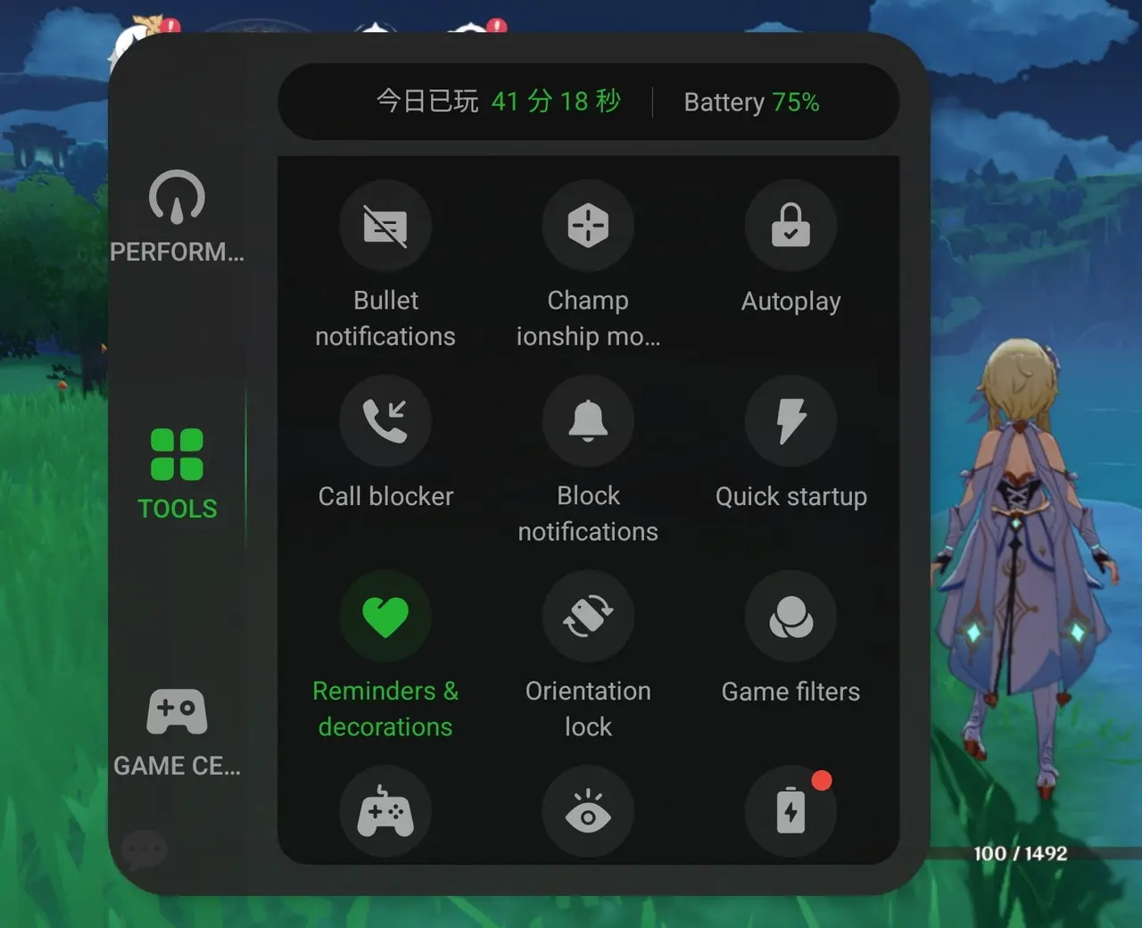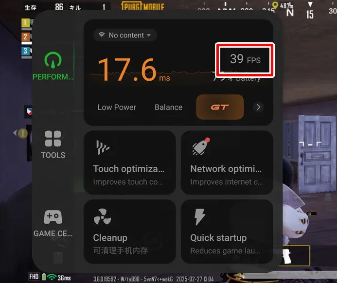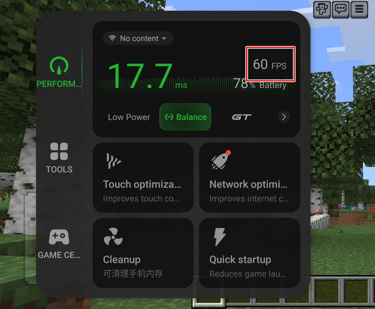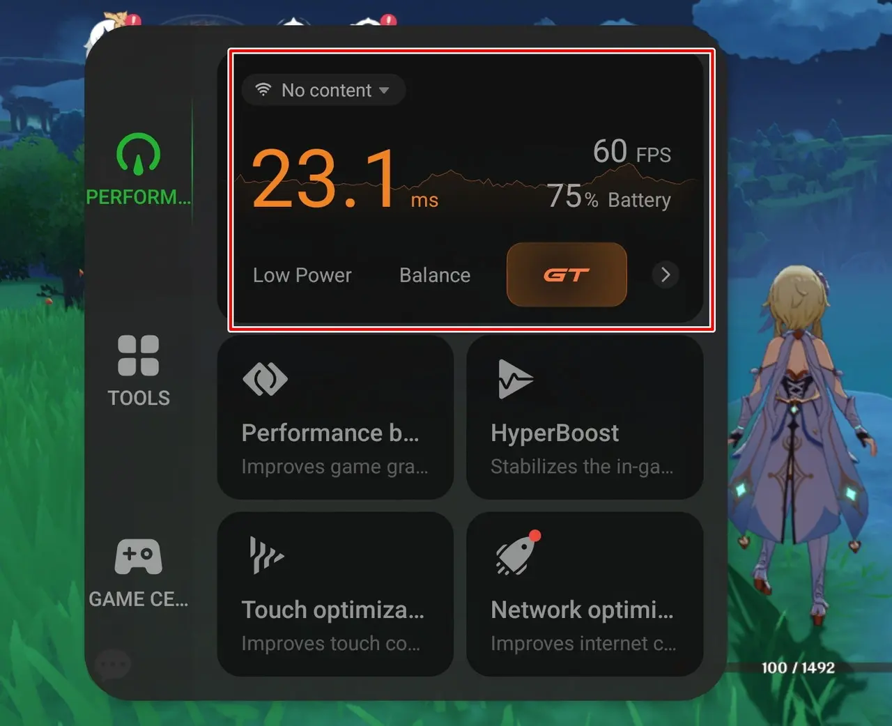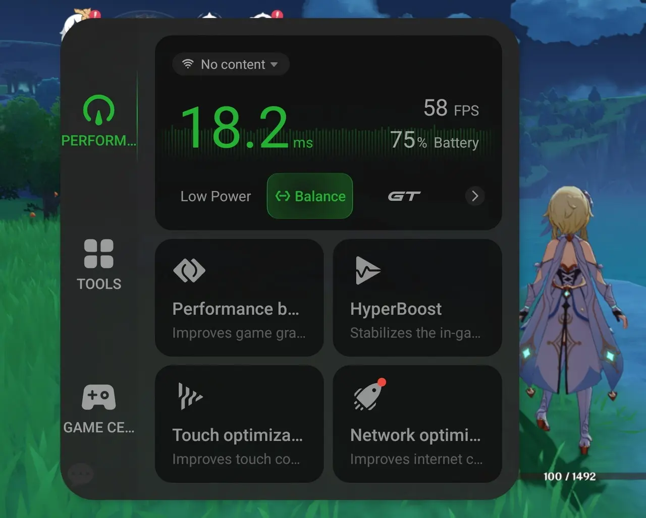 そして上記のツール画面から「Frame Plus」をオンにすることで、原神など一部の対応ゲームアプリにおいてフレーム補間が実行され、最高120fpsゲーミングが可能になる。
