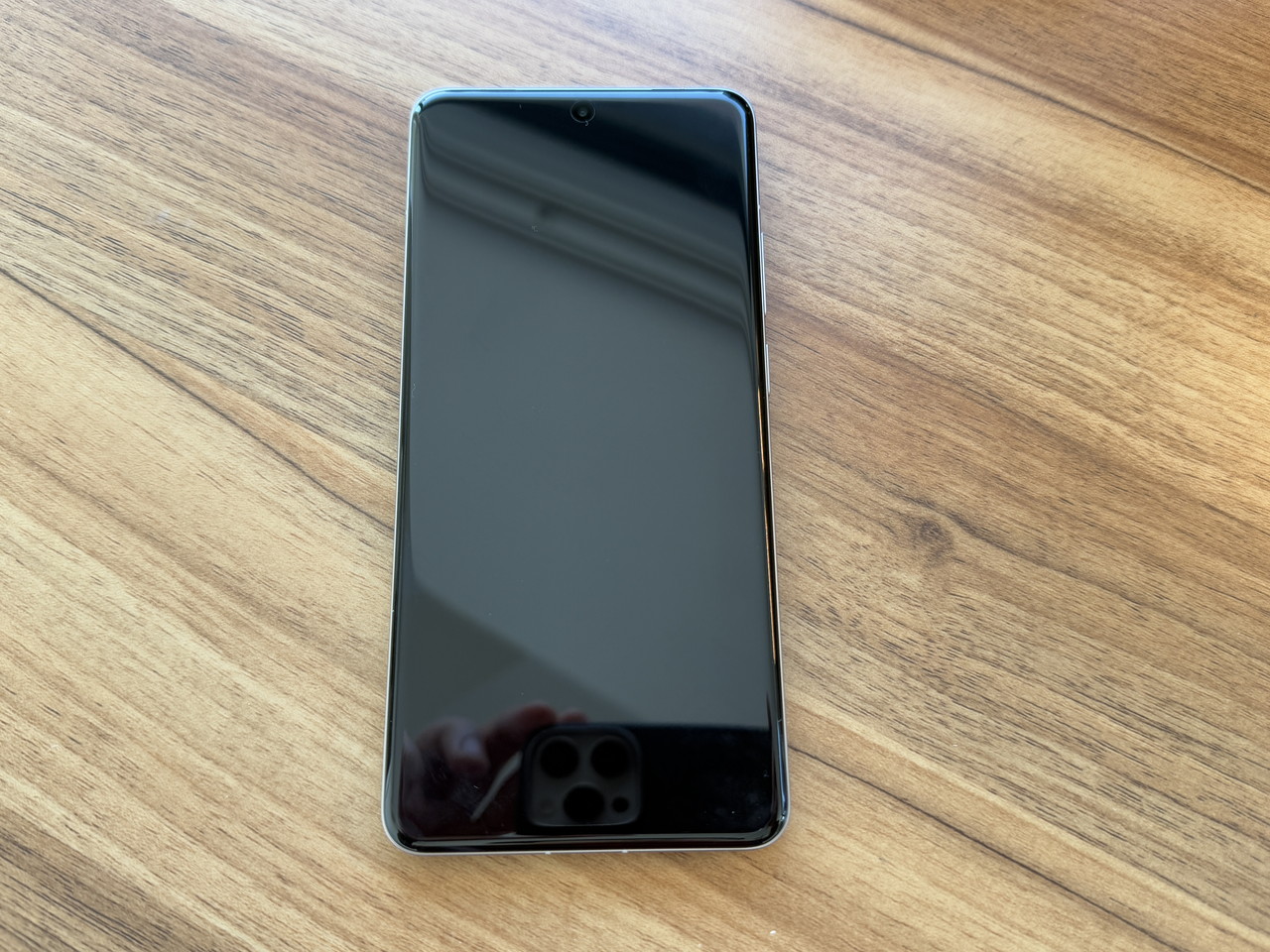 ▼スマホ本体の外観。6.78インチの大きめなディスプレイを搭載したスタイリッシュな外観。