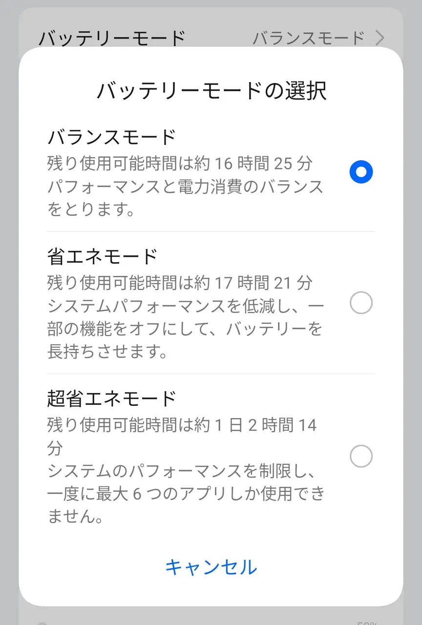 ▼省エネモードに変更することで、より長時間の連続使用が可能となる。
