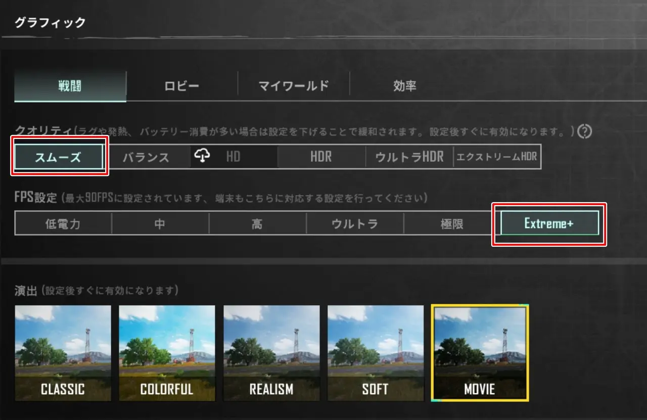 なお、画質クオリティを「スムーズ」に、フレームレートを「Ultra Extreme」に設定した場合、90fps前後の高フレームレートで安定してプレイすることが可能であった。