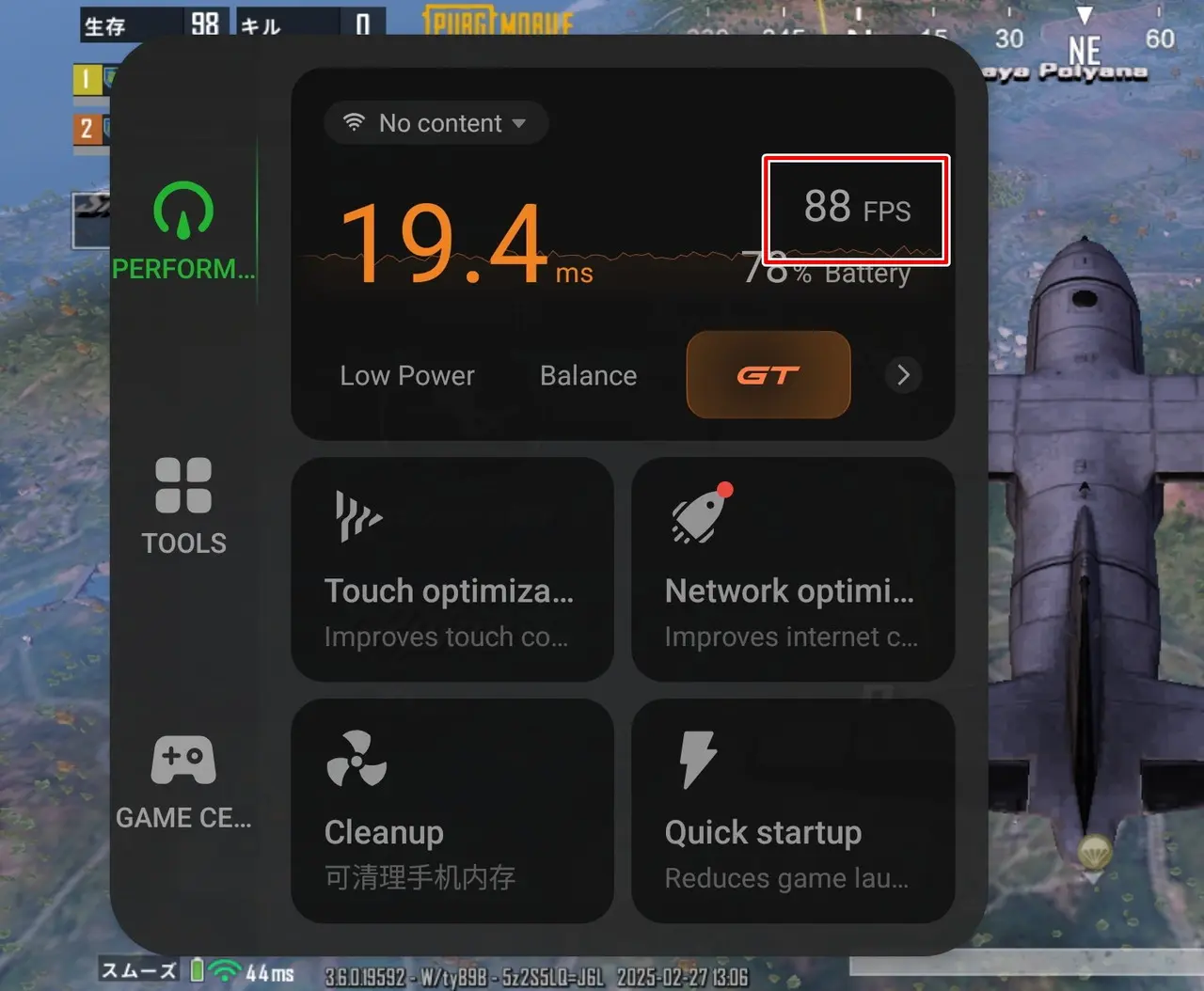 ▼フレームレートは常時60fps前後安定でプレイできていた。
