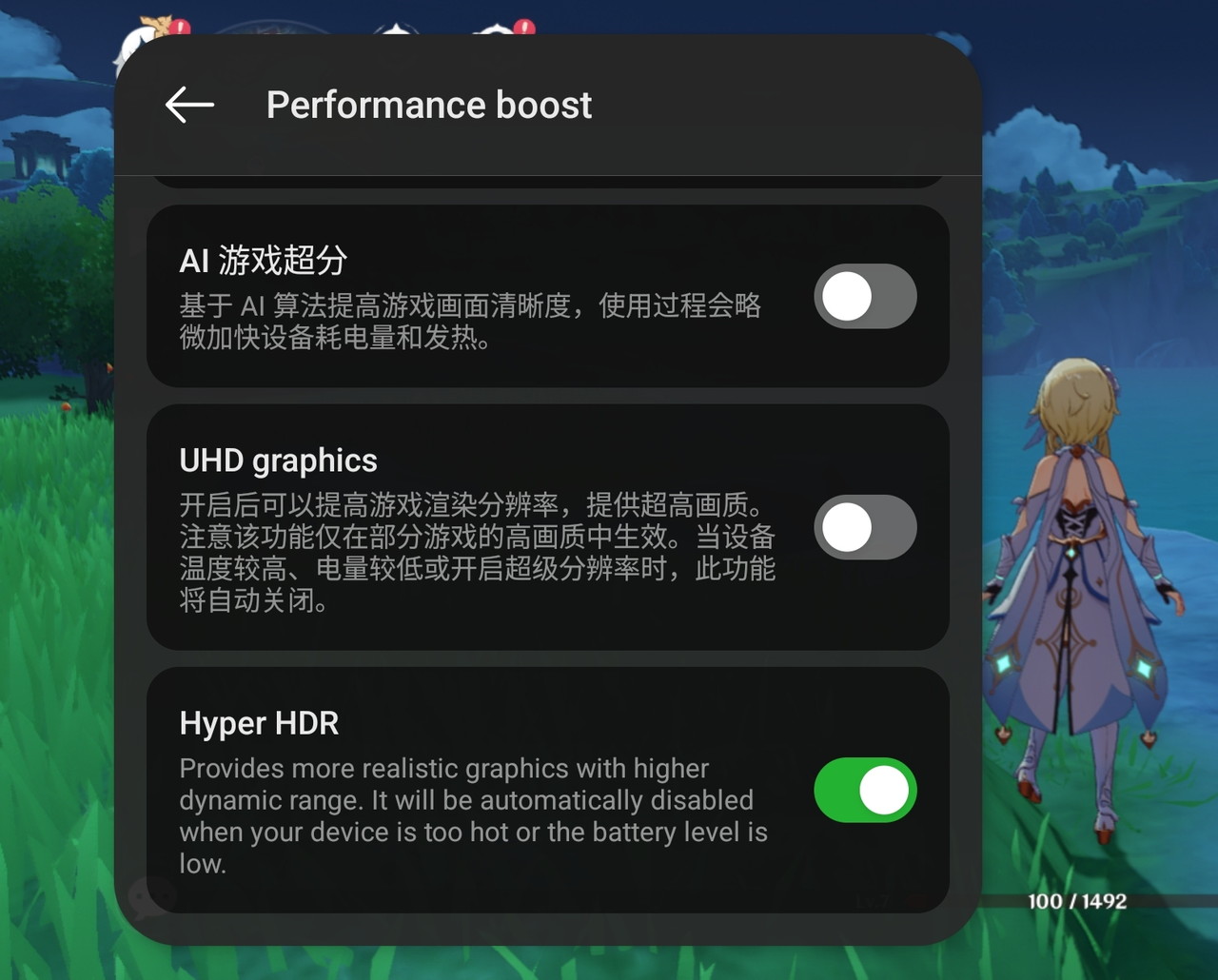 ▼また「Hyper HDR」をオンにすることで、アップスケーリングされたより鮮明な描画でゲームを楽しむことも可能。