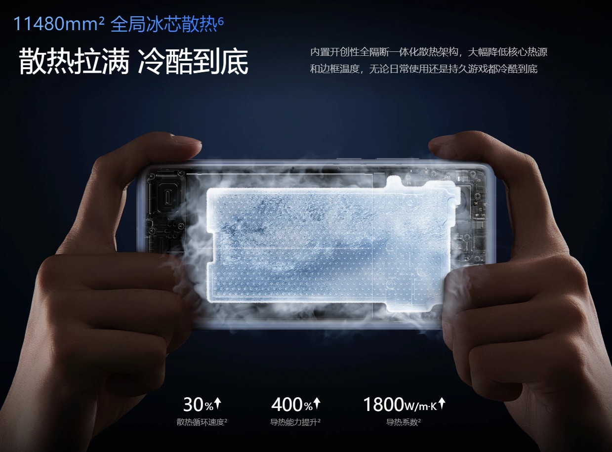 そして6,500mAhの大容量バッテリーを内蔵。120W有線急速充電に対応しており、わずか13分で50%の充電、38分で100%の充電が可能とのこと。