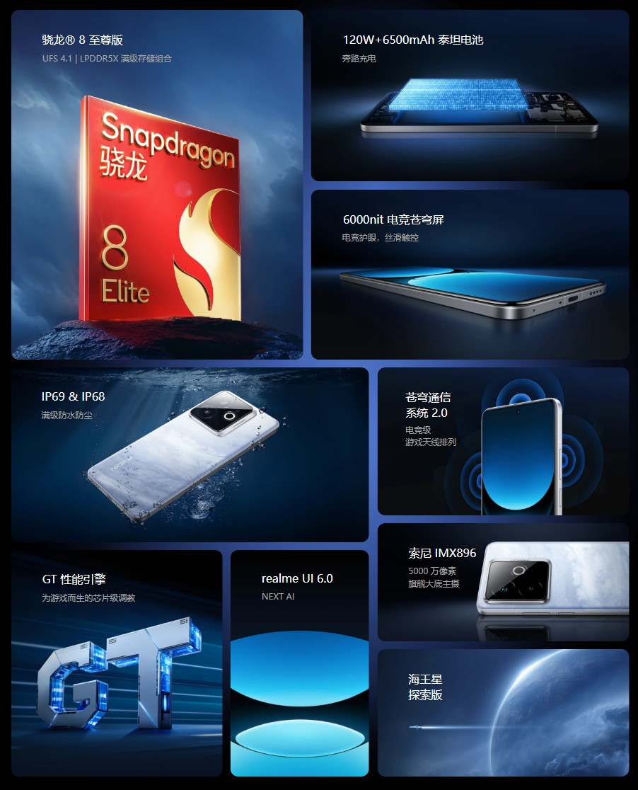2024年11月に発表された「realme GT7 Pro」と同じくSnapdragon 8 Eliteを搭載しており、ウルトラハイエンド級のパフォーマンスを発揮するモデルとなっている。