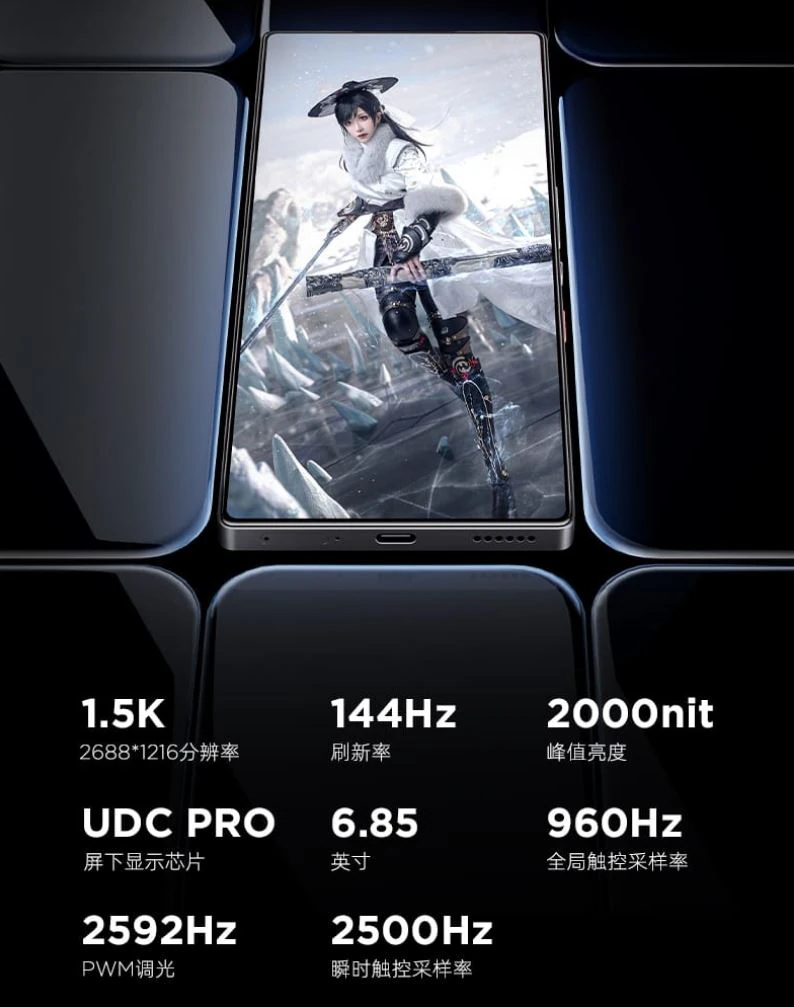 そして1216 x 2688解像度と144Hzリフレッシュレートによる美麗かつ滑らかな描画と、内蔵の空冷ファンによる優れた冷却能力、そして映像の没入感を向上させる画面下フロントカメラの導入により、卓越したゲーミング体験を可能とするスマートフォンとなっています。