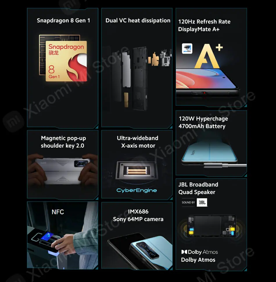 本モデルは『Redmi K40 Gaming Edition』(2021年4月発売)の後継モデルであり、基本スペックが大幅に向上しているほか、より快適なゲームプレイを可能にしたゲーミングスマホとなっている。