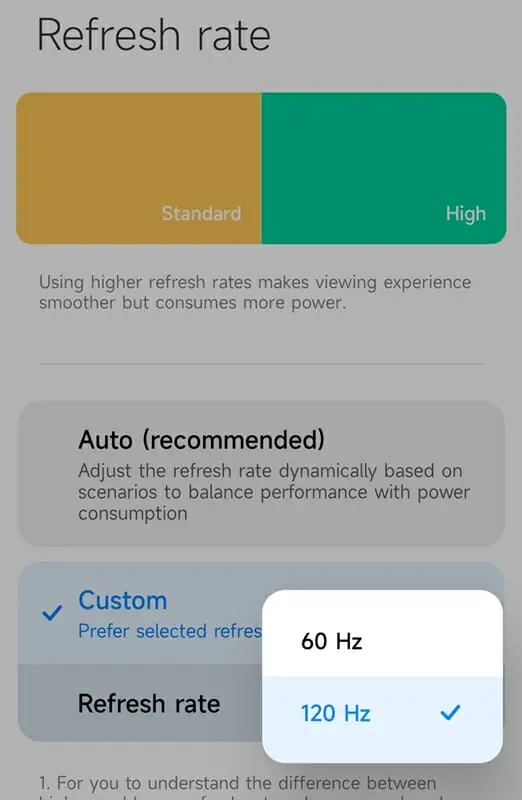 ▼リフレッシュレートは設定アプリより切り替えることが出来る。