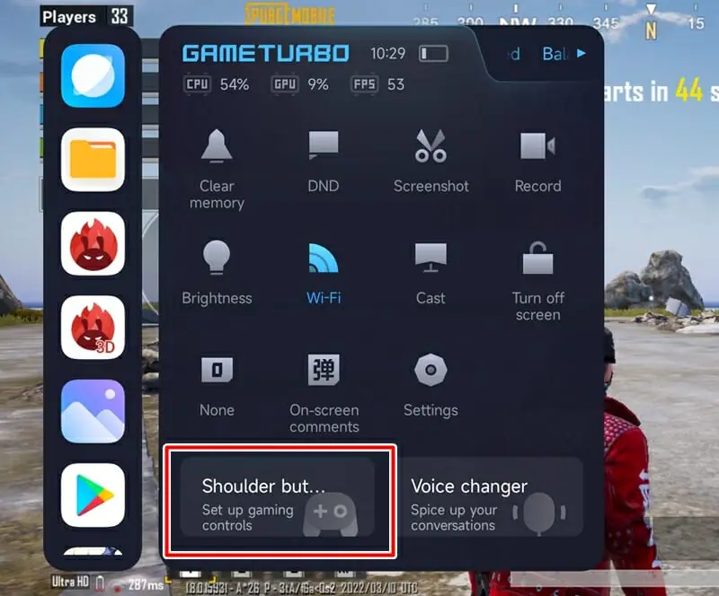 続いてゲームアプリ起動中に画面端をスワイプすると、ゲーム用の設定ウィンドウが出現する。