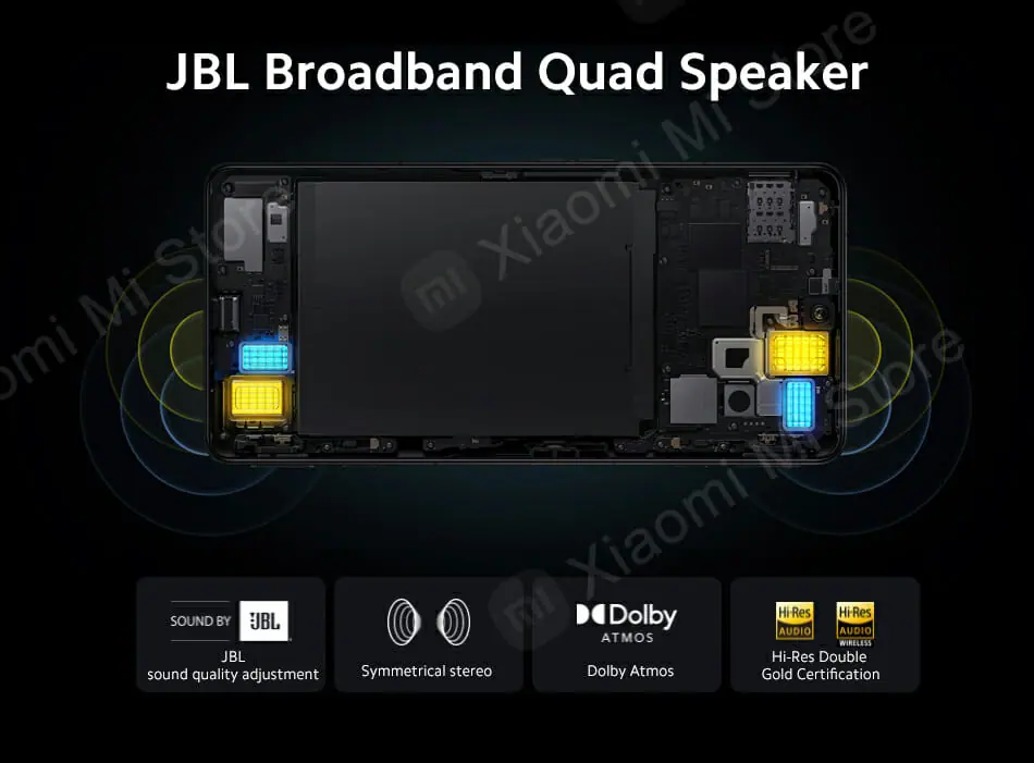 内部にはJBLチューニングのクアッドスピーカーが内蔵。立体的かつ高品質なサウンドを楽しむことが出来る。