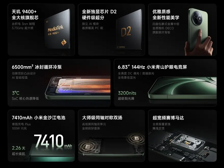 同じくMediatek Dimensity 9400+を搭載した『OnePlus Ace 5 Ultra』は、AnTuTuベンチマークテストにおいて約260万点(実測値)の高スコアを記録しており、『REDMI K80 Ultra』に関しても相応のスコアが期待できます。