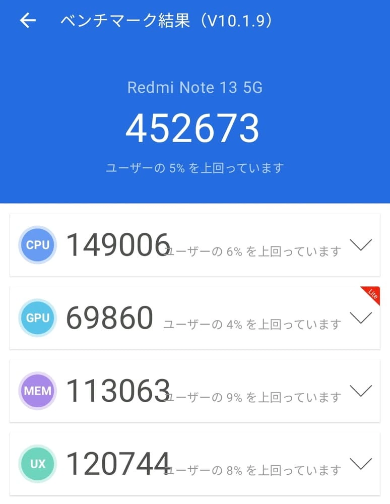 4万円前後の価格帯のスマホとしては、優れたスコアを記録できた。