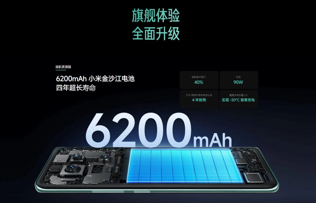 6,200mAh (90W急速充電)の大容量バッテリーを内蔵。長時間の連続使用、および短時間での充電が可能です。