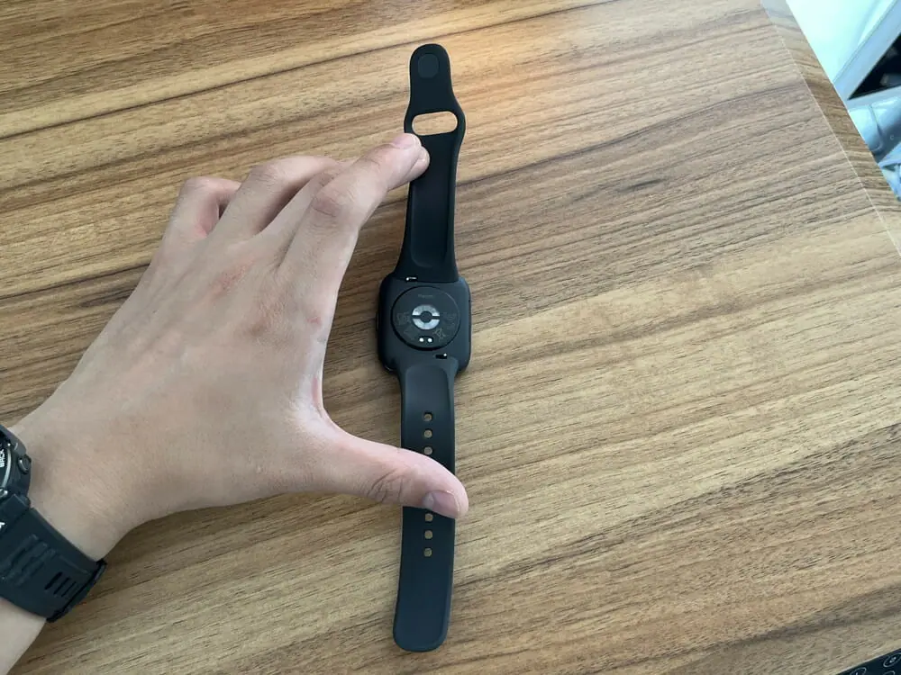 本体重量が約41g(ストラップ込み)と軽いため、長時間装着し続けても腕の疲れを生じなかった。