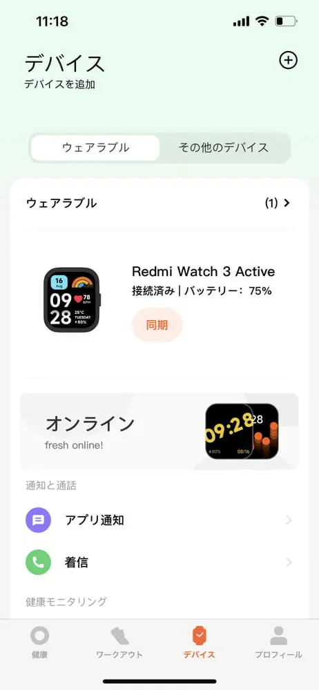 アプリ(スマホ・タブレット端末)とのペアリングが完了すると、端末上でスマートウォッチの状態を確認したり、データの分析や機能のカスタマイズなどを行うことが可能となる。