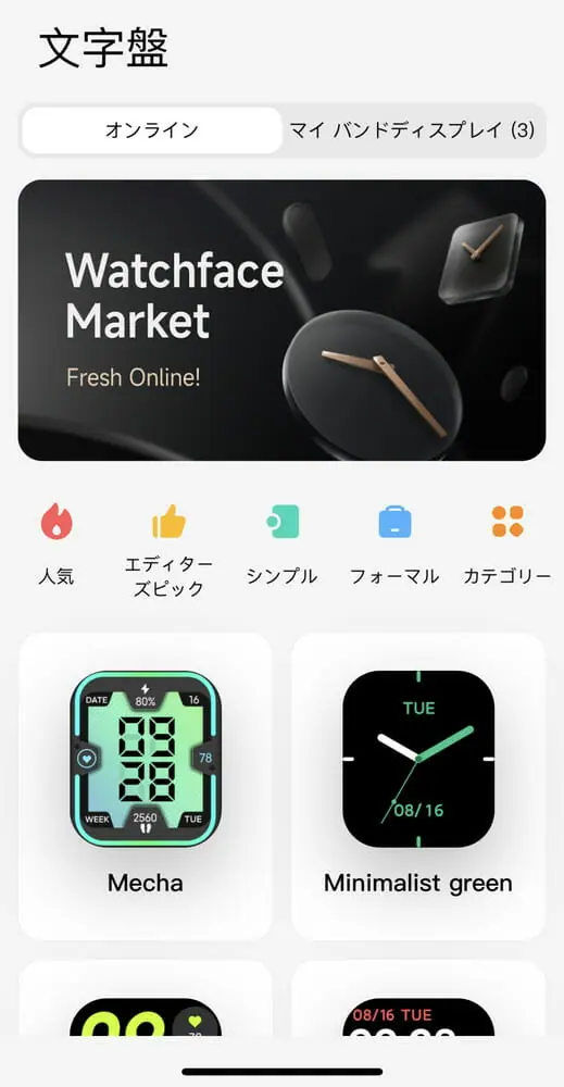 アプリから無料のテーマをインストールすることで、スマートウォッチのホーム画面(ウォッチフェイス)のデザインを自由に変更することも可能だ。