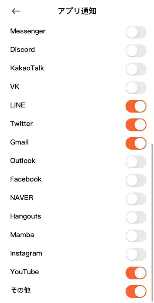 ▼アプリごとに通知のON/OFFを切り替えることも可能な点も嬉しい。