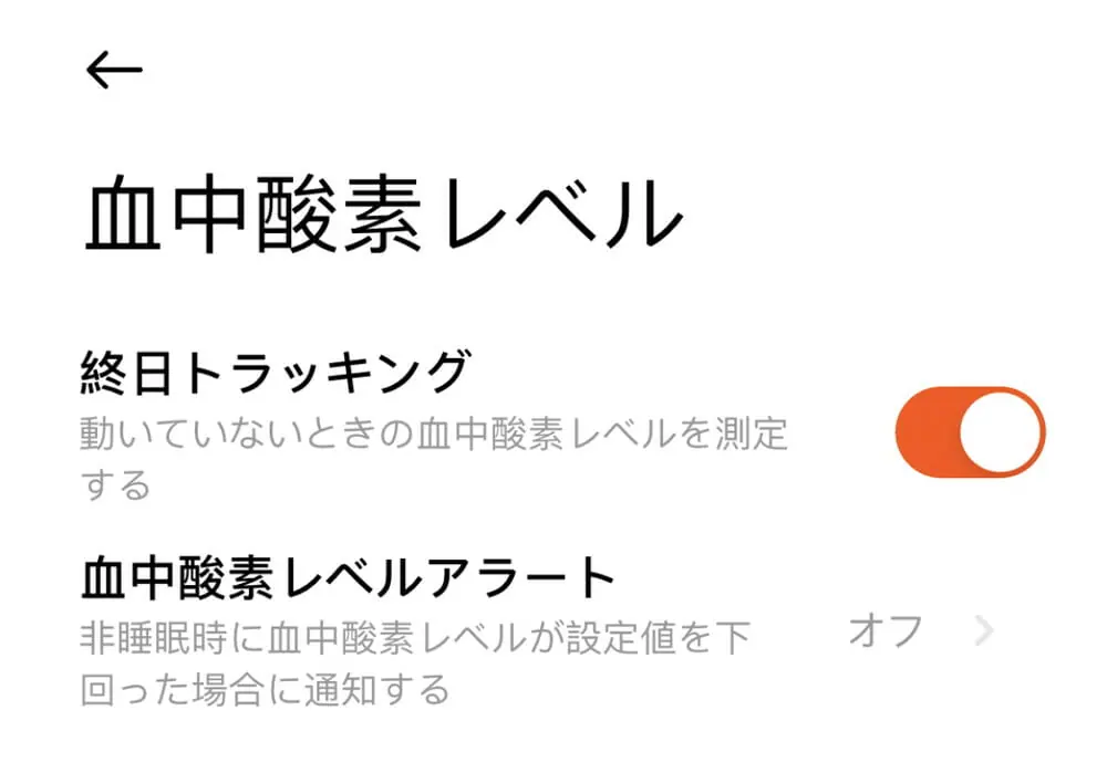 本製品には健康モニタリング機能が備わっており、ストレス・睡眠・心拍数・血中酸素飽和濃度などの数値を24時間監視(トラッキング)し、データとして可視化・保存しておくことが出来る。