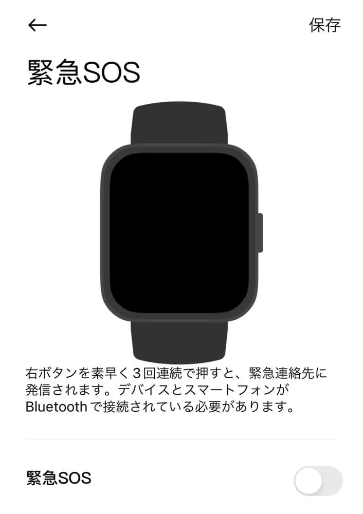 ▼緊急SOS機能も搭載されており、右ボタンを3回連続で押すと、事前登録済みの緊急連絡先へ自動で発信することも可能だ。