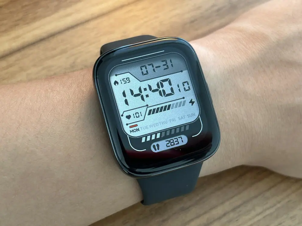 ▼スマートウォッチ本体の外観。46.94×38.88×10.94 mmの筐体に、1.83インチの大きめなタッチディスプレイが搭載されている。