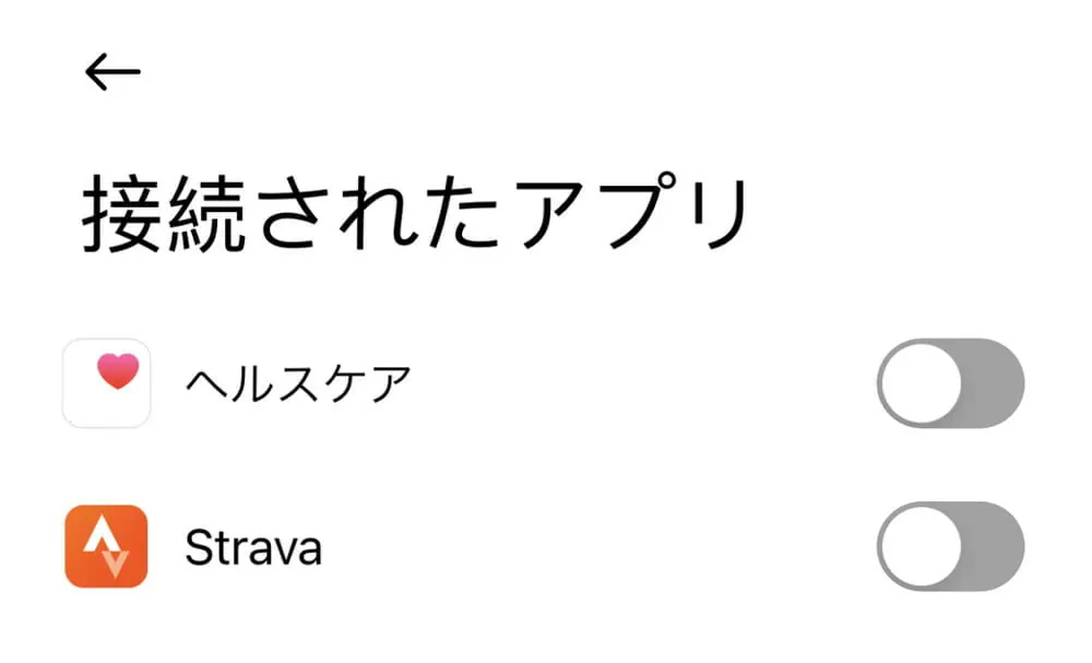 アプリでは「Strava」や「ヘルスケア」など、サードパーティから過去のデータを転送(共有)することも可能だ。