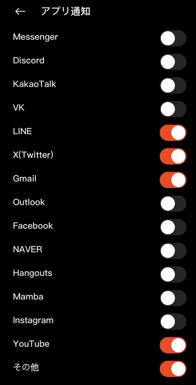 ▼アプリごとに通知のON/OFFを切り替えられる点もGOOD。