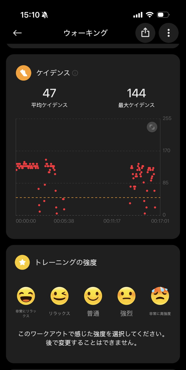 このように、自身がどの程度の運動を行ったかを詳細に確認できるようになっている。