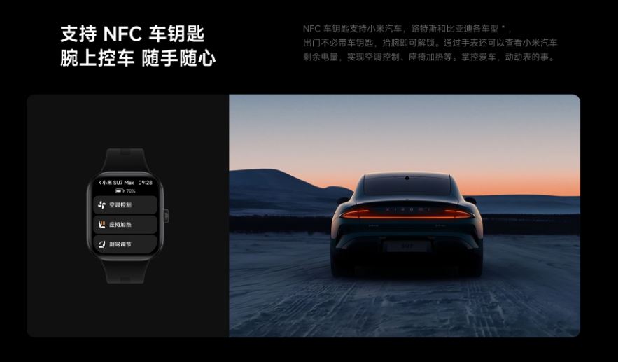 NFCもサポートしており、ウォッチ越しの決済や、対応する自動車の遠隔操作などを行うこともできる。
