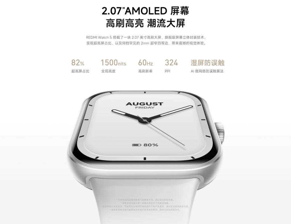 2024年10月に発売された「Redmi Watch 5 Lite」や「Redmi Watch 5 Active」と比べると、一回り高価な価格設定のミドルレンジモデルとなっている。