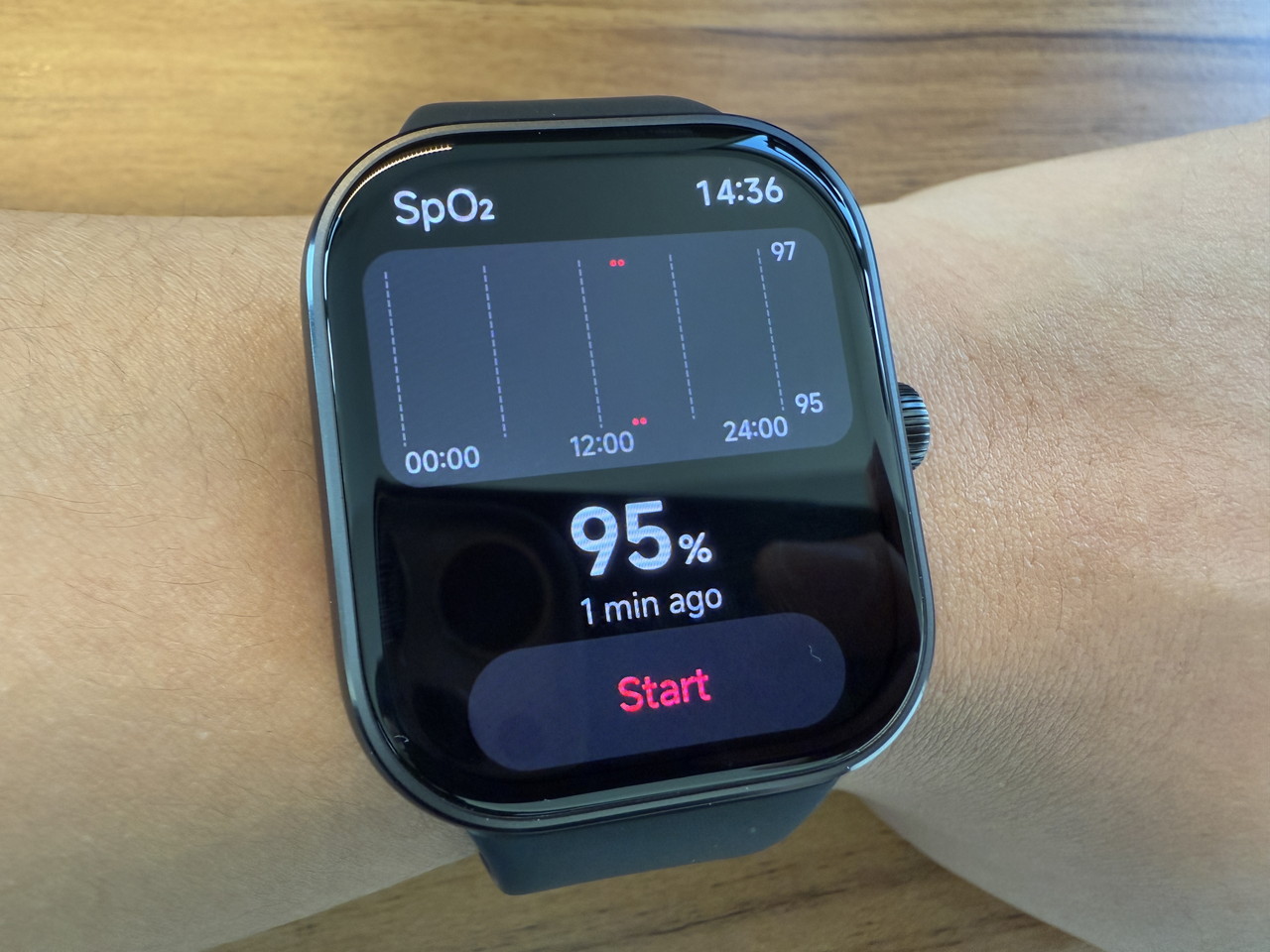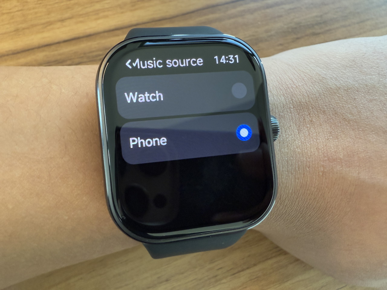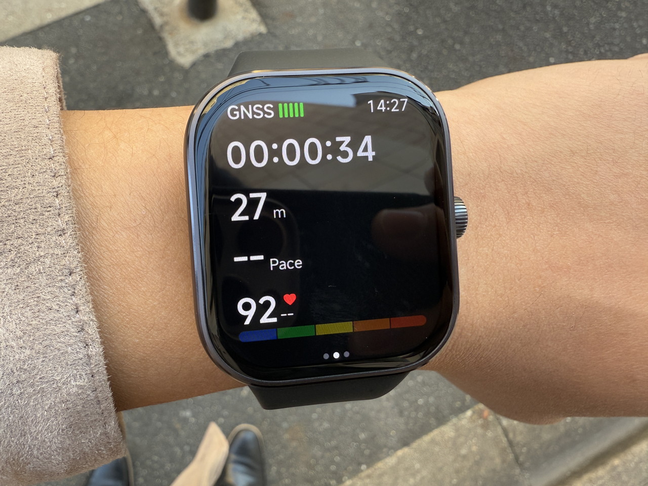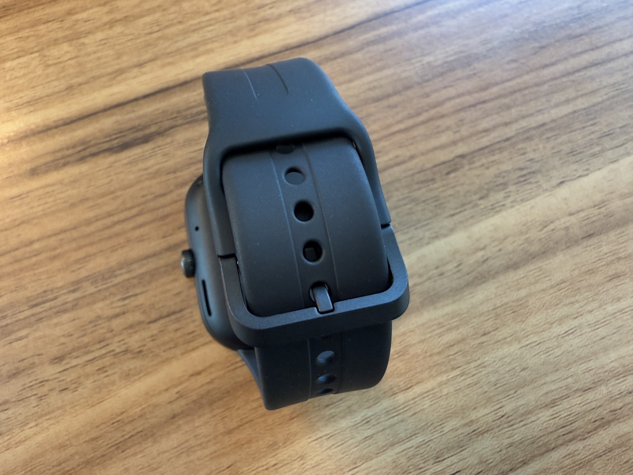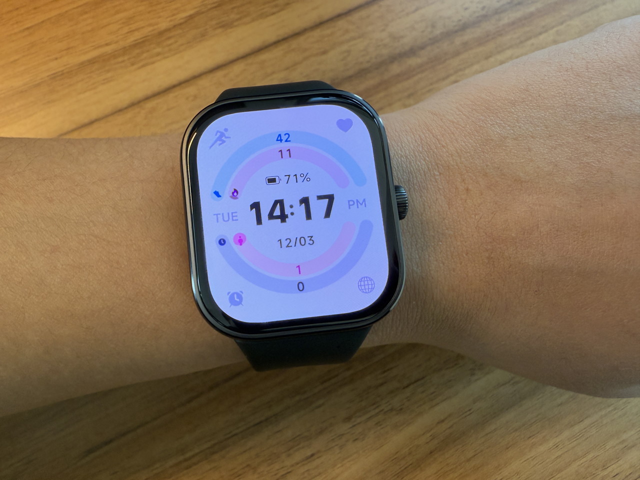 アルミニウム合金ミドルフレーム + ステンレススチールクラウンで構成されたウォッチ本体部分には、そこそこの高級感がある。デザイン的にもシンプルかつスタイリッシュなため、職場やビジネスの場に装着して行っても違和感はないだろう。