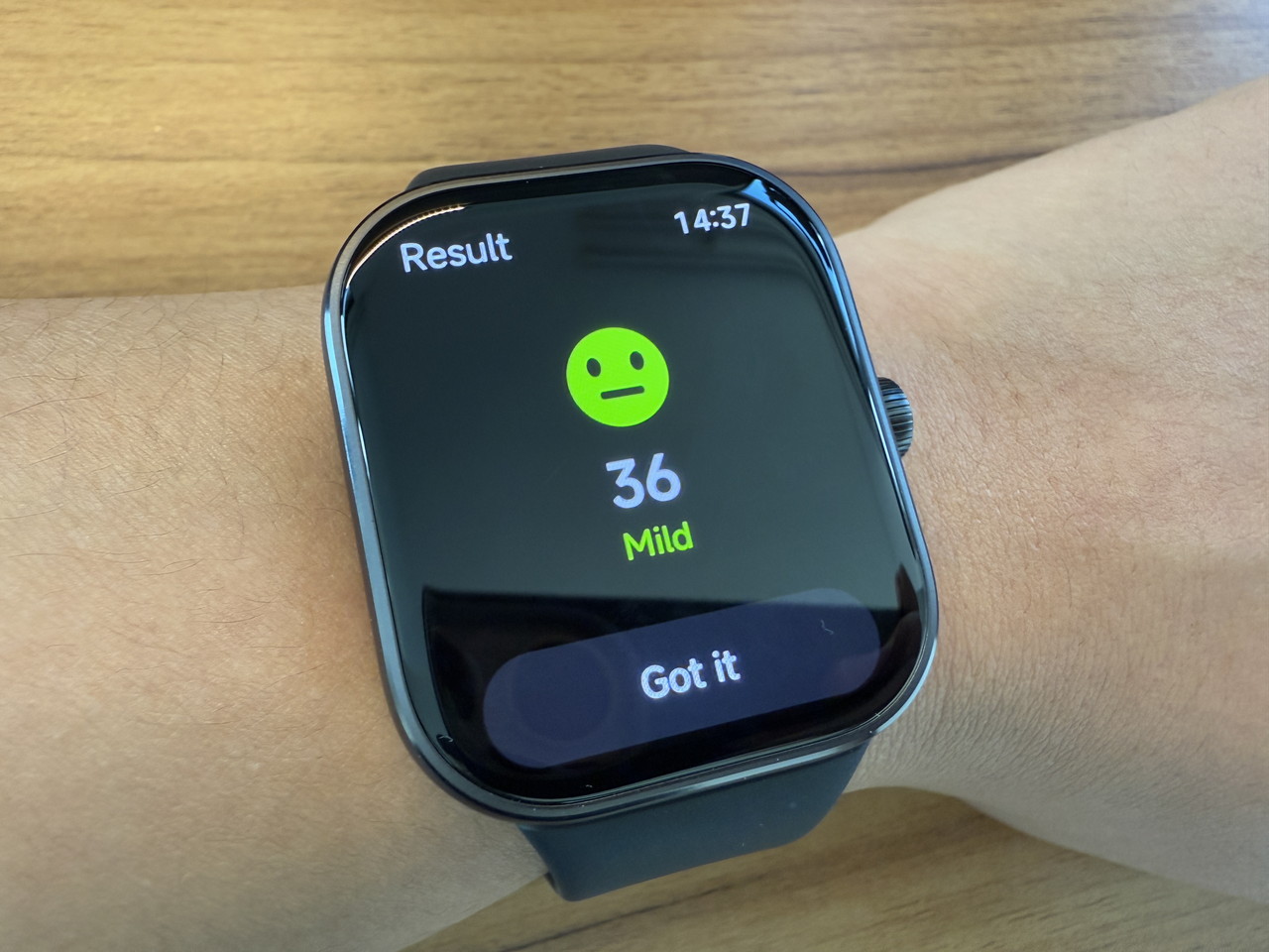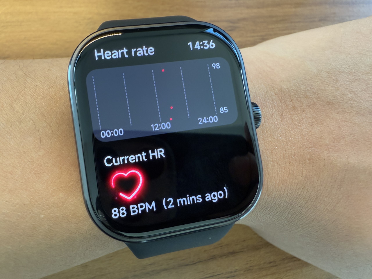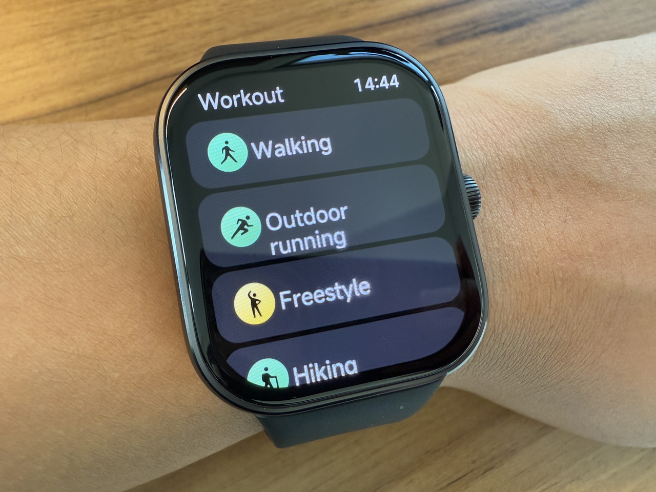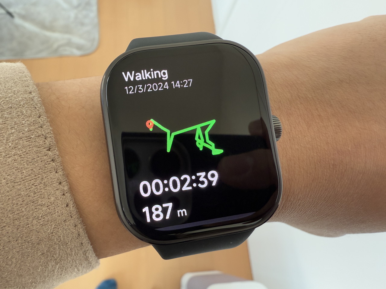 アルミニウム合金ミドルフレーム + ステンレススチールクラウンで構成されたウォッチ本体部分には、そこそこの高級感がある。デザイン的にもシンプルかつスタイリッシュなため、職場やビジネスの場に装着して行っても違和感はないだろう。