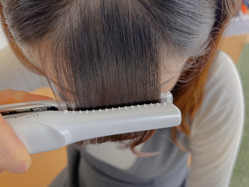 実際に本製品を用いて、前髪をストレートに伸ばしてみた。