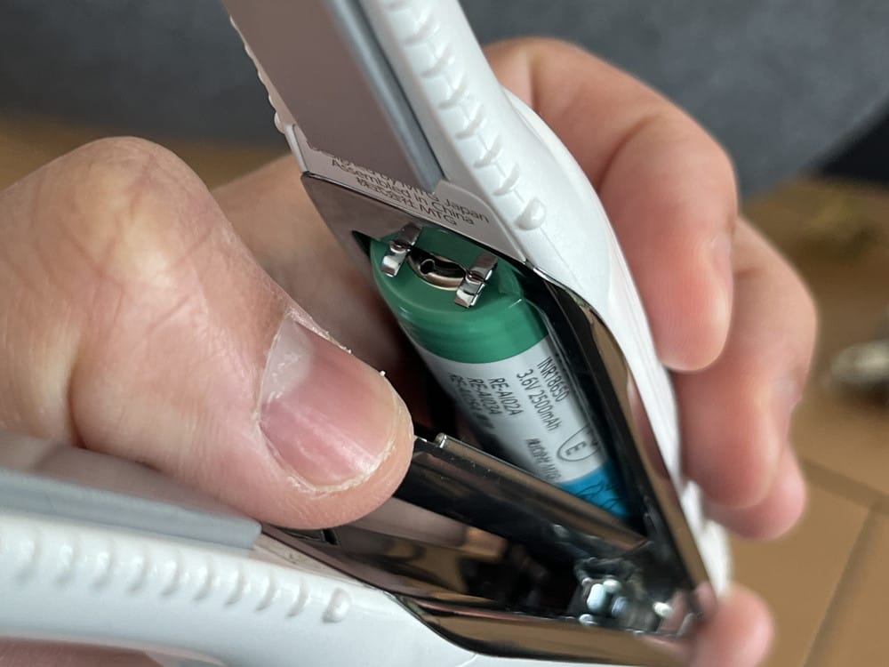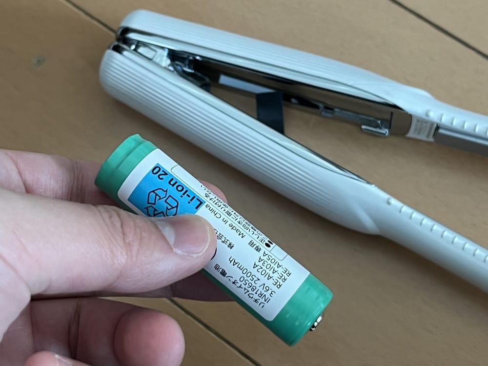 ▼アイロンを展開した状態で内部カバーを外すことで、リチウムイオン電池を取り外せる。