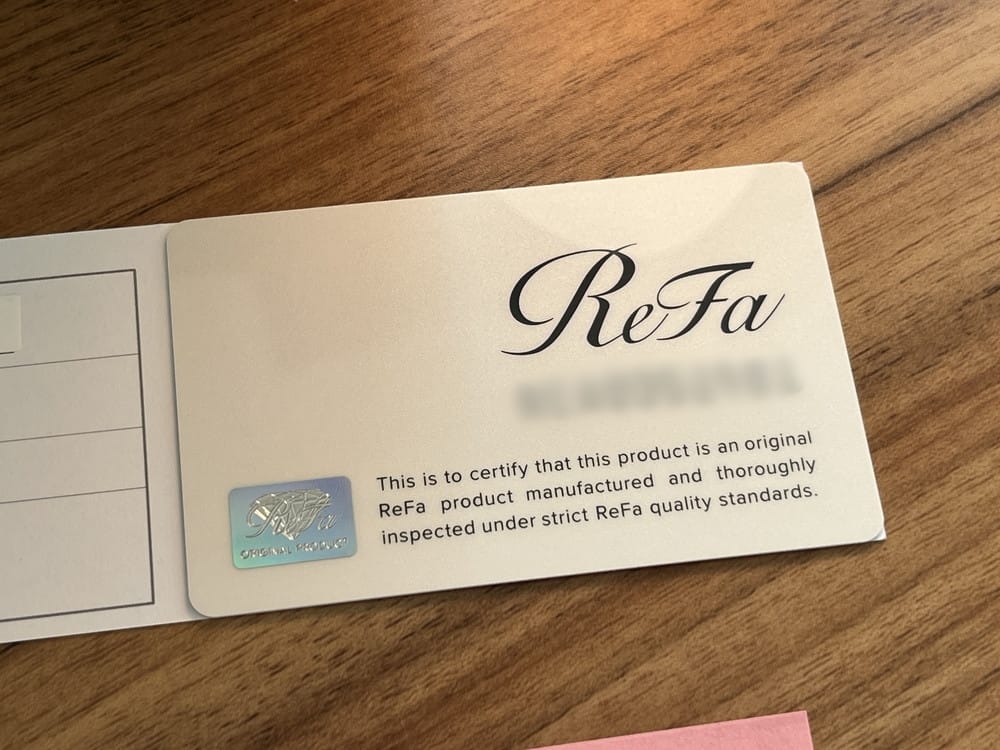 ▼製品ごとの番号が登録されたギャランティーカードが付属。故障しても新品と交換してもらえるなど、ReFaの手厚いアフターサポートを受けることが出来る。