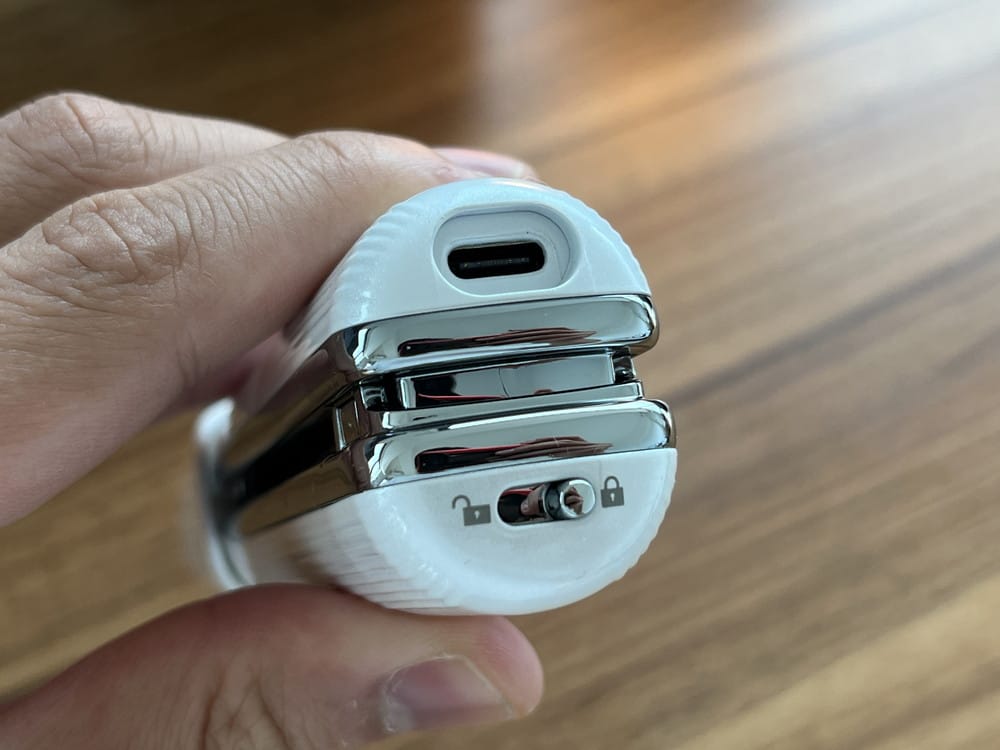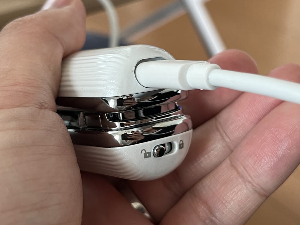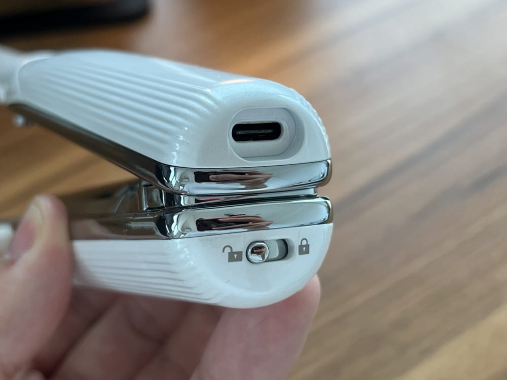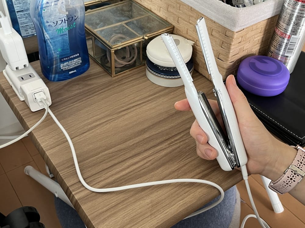 まず最初にUSB Type-Cケーブルを用いて、ヘアアイロンを充電する。