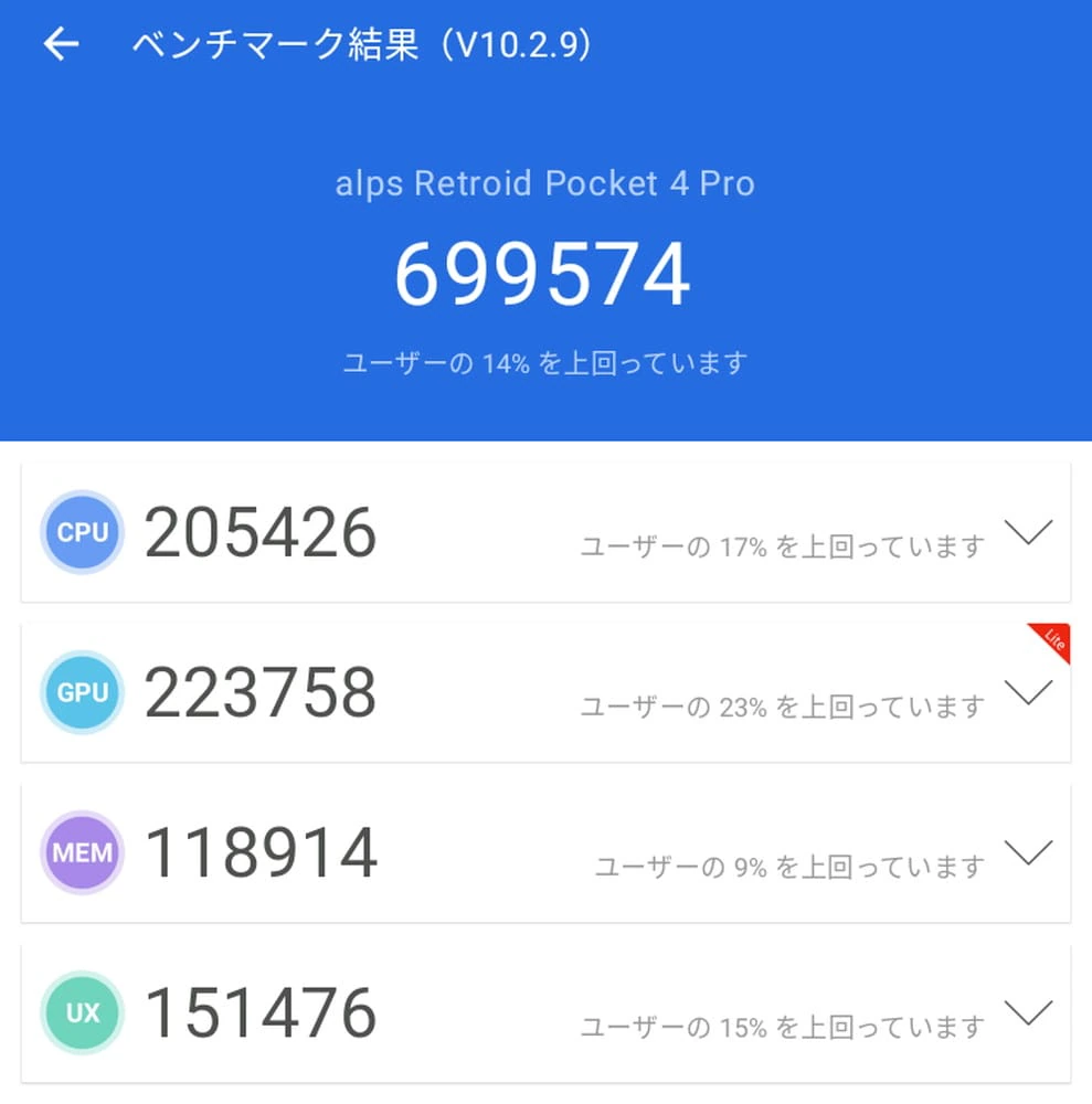 - AnTuTuベンチマークテストで約70万点を記録するスペック