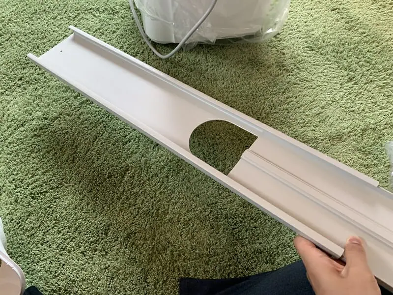 取付後、窓枠に『窓パネル&レール』を取り付けた状態の排熱ダクトを設置し、外部へ排熱口を出す準備を整える。