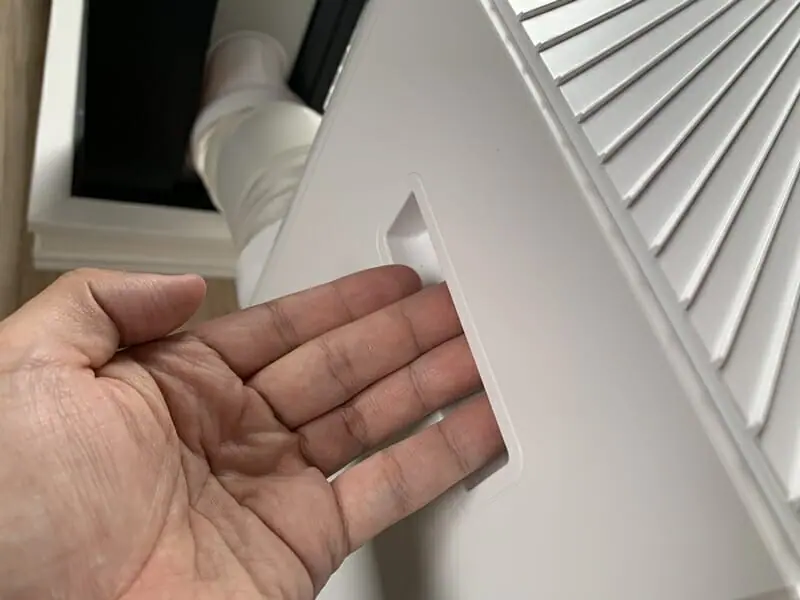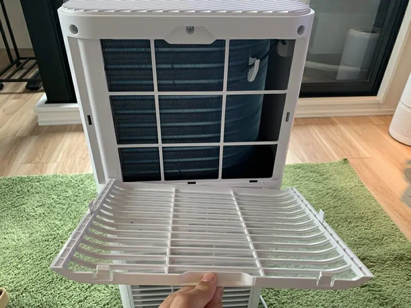 ▼吸気口のフタは簡単に取り外すことができ、掃除できるようになっている。