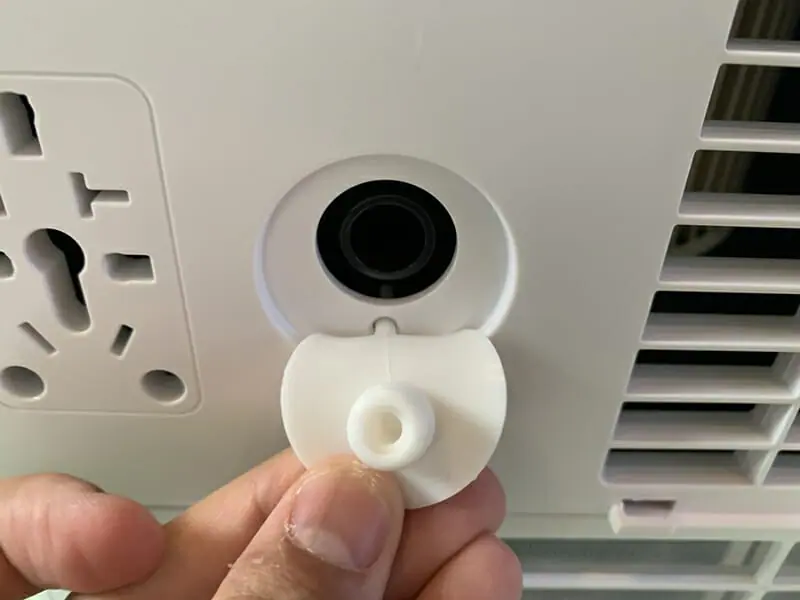 ▼中腹には電源供給のポートに加え、ドレン水を直接排水するための穴が用意されている。