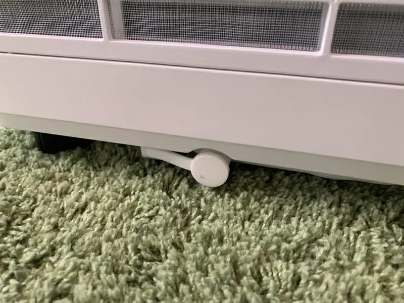 ▼そして底面には4つのキャスターが搭載。20kg超えの重いスポットクーラーを手で押してラクラク移動させることが可能だ。